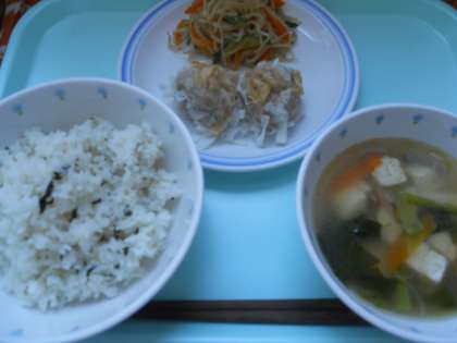 11月15日木曜日 公開日 2018/11/15 更新日 2018/11/15 給食 わかめご飯 花シュウマイ 春雨サラダ 中華スープ 牛乳 産地情報 しょうが(高知)玉ねぎ(北海道)きゅうり(宮崎)もやし(千葉)人参(千葉)小松菜(埼玉)長ネギ(青森)豚肉(青森)鶏肉(徳島) いいね(0)