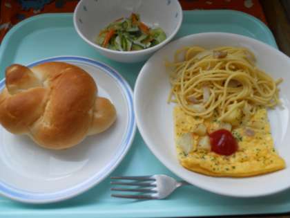 11月19日月曜日 公開日 2018/11/19 更新日 2018/11/19 給食 パインパン スパニッシュオムレツ ペペロンチーノ グリーンサラダ 牛乳 産地情報 玉ねぎ(北海道)パセリ(長野)じゃがいも(北海道)にんにく(青森)キャベツ(長野)きゅうり(宮崎)人参(千葉)ベーコン(茨城)ハム(茨城)卵(秋田) いいね(0)