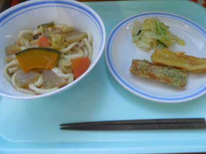 12月21日金曜日 公開日 2018/12/21 更新日 2018/12/21 給食 ほうとう 竹輪の二色揚げ 一塩野菜 牛乳 産地情報 人参(千葉)大根(神奈川)ごぼう(青森)かぼちゃ(鹿児島)シメジ(長野)長ネギ(千葉)キャベツ(愛知)かぶ(千葉)しょうが(高知)白菜(茨城)鶏肉(宮崎)卵(秋田)あおのり(愛知) いいね(0)