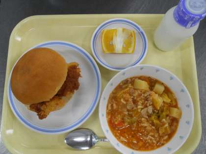 4月22日(月) 公開日 2019/05/11 更新日 2019/05/11 給食 ・フィッシュバーガー ・ミネストローネ ・果物(甘夏みかん) ・牛乳 食材産地 ・キャベツ(神奈川)・玉葱(佐賀)・セロリ(静岡)・じゃが芋(鹿児島)・人参(徳島)・パセリ(静岡)・甘夏みかん(熊本)・メルルーサ(アルゼンチン沖)・鶏卵(秋田)・豚肉(熊本) いいね(0)