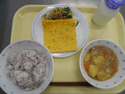 4月26日(金) 公開日 2019/05/11 更新日 2019/05/11 給食 ・ゆかりとじゃこのごはん ・千草焼き ・おかか和え ・新じゃが芋のそぼろ煮 ・牛乳 食材産地 ・人参(熊本)・玉葱(佐賀)・パセリ(静岡)・白菜(茨城)・ほうれん草(埼玉)・もやし(静岡)・じゃが芋(鹿児島)・さやいんげん(長崎)・ちりめんじゃこ(広島)・鶏挽肉(徳島)・豚挽肉(青森、鹿児島)・鶏卵(秋田) いいね(0)