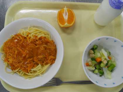 5月30日(木) 公開日 2019/06/13 更新日 2019/06/13 給食 ・ツナとトマトのスパゲティ ・大豆のサラダ ・果物(清見オレンジ) ・牛乳 食材産地 ・にんにく(青森)・玉葱(兵庫)・人参(徳島)・キャベツ(愛知)・きゅうり(宮崎)・アスパラガス(青森)・パセリ(長野)・セミノール(和歌山) いいね(0)