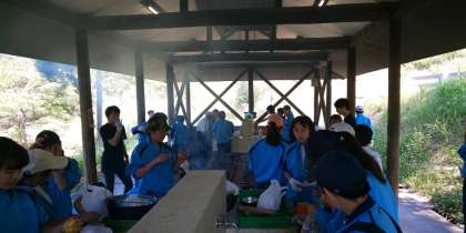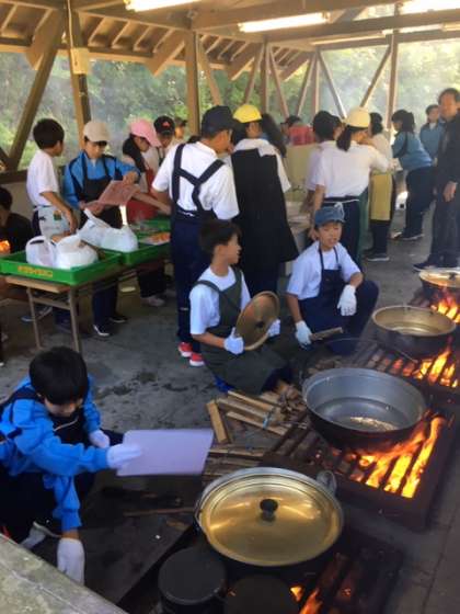 休暇村キャンプ場にて飯盒炊飯(カレー作り)開始です!