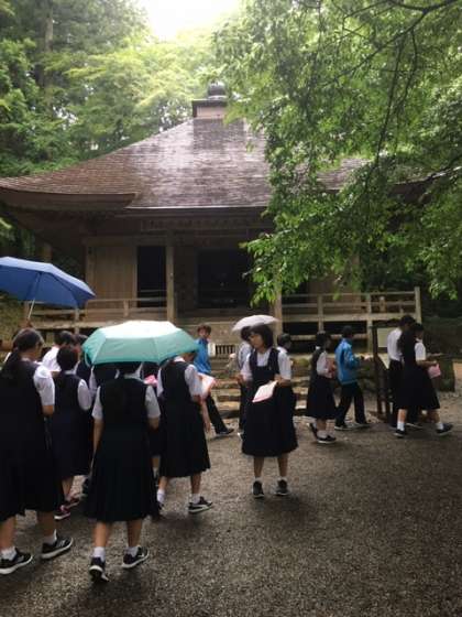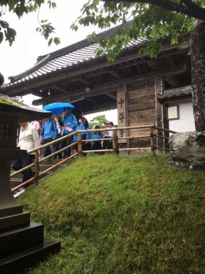 中尊寺見学。金色堂、宝物館。少し小雨が降っています。
