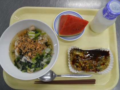 6月28日(金) 公開日 2019/07/03 更新日 2019/07/03 給食 ・スープ茶漬け ・お好み焼き ・果物(すいか) ・牛乳 食材産地 ・長葱(千葉)・小松菜(東京)・人参(千葉)・キャベツ(長野)・にら(山形)・すいか(熊本)・甘塩鮭(チリ原料)・鶏肉(徳島)・豚肉(青森)・鶏卵(群馬) いいね(0)