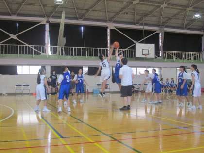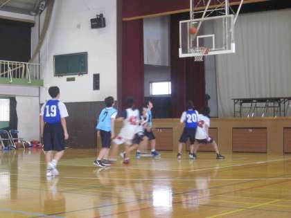 体育館では、バスケットボール部が9中を招いて練習試合をしています。