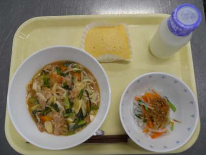 9月19日(木) 公開日 2019/09/19 更新日 2019/09/19 給食 みそラーメン 野菜の中華和え 中華蒸しカステラ 牛乳 食材産地 にんにく(青森)生姜(高知)人参(北海道)玉葱(北海道)長葱(青森)にら(栃木)小松菜(埼玉)大根(北海道)豚肉(青森) いいね(0)