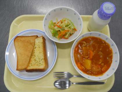 9月24日(火) 公開日 2019/09/27 更新日 2019/09/27 給食 ミニガーリックトースト ミニシナモントースト ポークシチュー 野菜サラダ 牛乳 食材産地 にんにく(青森)セロリ(長野)人参(北海道)玉葱(北海道)じゃが芋(北海道)キャベツ(長野)大根(青森)豚肉(青森) いいね(0)