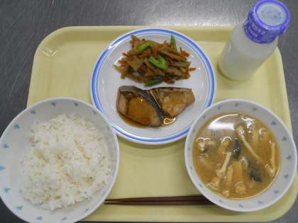 9月27日(金) 公開日 2019/09/27 更新日 2019/09/27 給食 ごはん みそ汁 ぶりの照り焼き 五目金平 牛乳 食材産地 生姜(高知)人参(北海道)ごぼう(青森)れんこん(茨城)さやいんげん(青森)里芋(埼玉)長葱(青森)ぶり(岩手) いいね(0)