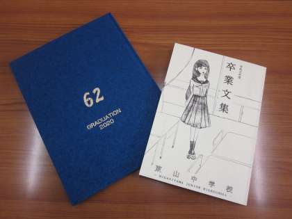 さて、卒業アルバムと卒業文集が届きました。入学当時の写真はかわいらしいですね。3年生の姿しか見ていませんので、新鮮です。どちらも卒業式の日に配りますので、家でゆっくり見てください。