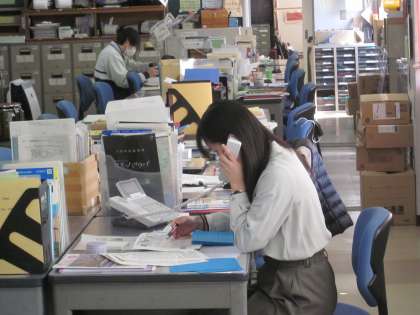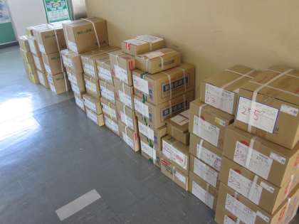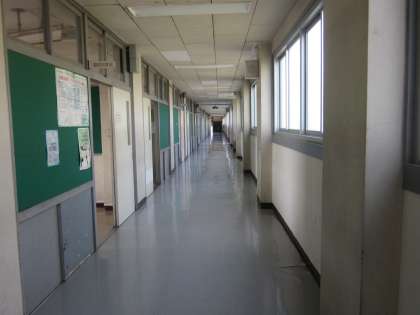 校舎内の廊下はやはり生徒の声も気配もなく寂しいです。また、廊下には今年度各教科で使用する副教材が山積みになっています。「早く使ってくれ〜!!」と声をあげているようです。