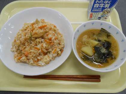 7月3日献立 公開日 2020/07/03 更新日 2020/07/03 給食 <献立>鮭入り五目寿司 味噌汁 <産地>人参(千葉県香取市)、れんこん(茨木県霞ケ浦)、いんげん(茨木県結城市)、じゃが芋(長崎県)、長ネギ(千葉県緑区) いいね(0)