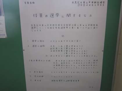 本日、朝の会で、選挙管理委員長の谷川原くん(3B)が放送で、9月に行われる生徒会役員選挙について説明を行いました。