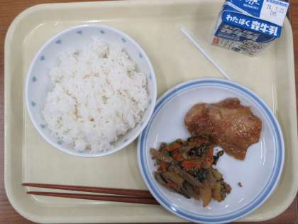 <献立>ごはん  鶏肉の葱ソース   金平炒め