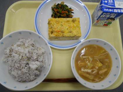 <献立>じゃことゆかりのご飯 擬製豆腐 ごま和え 味噌汁