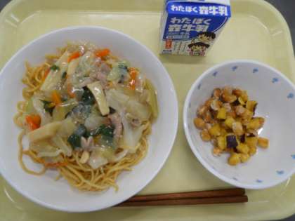 今日11月8日は「いい歯」の日です。歯を丈夫に保つためには食後に歯を磨く、甘いものを食べ過ぎないことも大事ですが、柔らかい物ばかり食べずよく噛んで食べる、ことも大事です。給食の「豆かりんとう」は大豆とさつま芋を揚げてあるので、噛み応えがあります。永久歯は死ぬまで生え変わることなく一生大事にしなければいけない歯ですので、口の中をきれいに保つ、よく噛む、歯を作るもととなるバランスの良い食事、を意識しましょう。