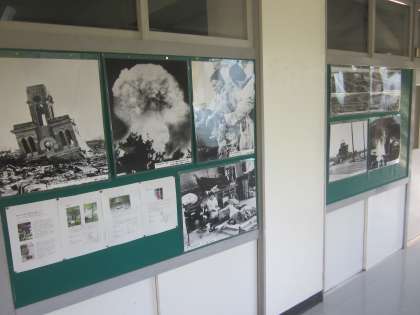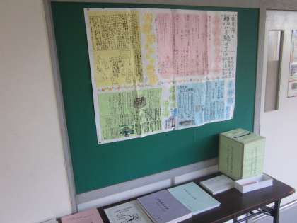 11月26日まで図書室前の廊下と壁に、写真や資料が展示されています。