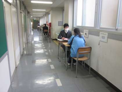 25日(木)から始まる校長面接へ向けて、3年生は担任の先生が面接練習をしています。
