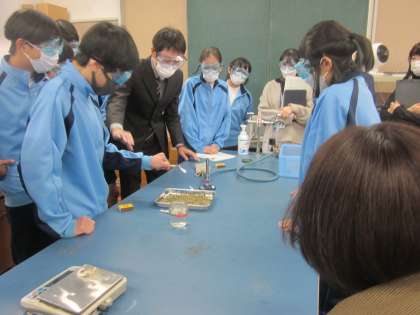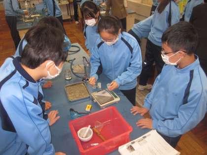 2年生理科「化学変化と原子分子」、実験の様子です。