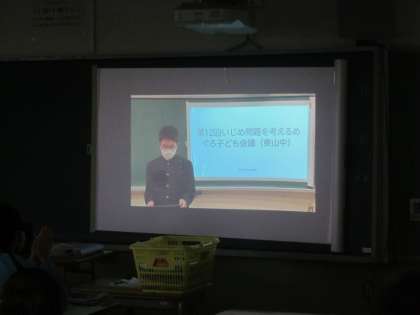 11月24日に行った「いじめ問題を考えるめぐろ子ども会議」の内容を、生徒会が動画にまとめて本日朝、各クラスで共有しています。