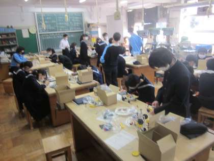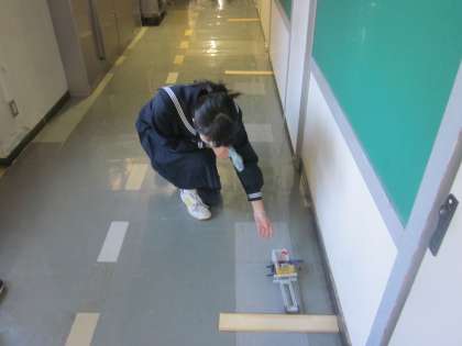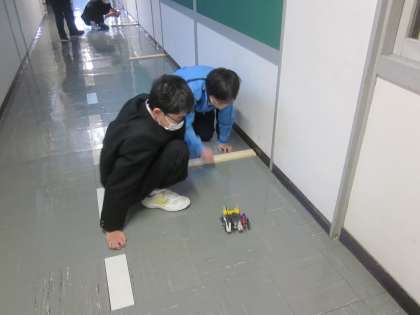 自分で作った「テック未来」にペン、消しゴムなどを乗せて走らせています。
