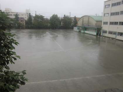前期終業式、外は雨が激しく降り、とても寒いです。昨日より寒いです。
