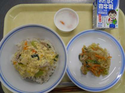<献立>卵入りクッパ チャプチェ みかん入り牛乳寒天