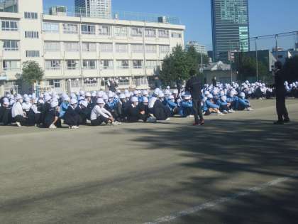 千葉県を震源とする地震とし、、東京周辺で震度5の地震が発生したことを想定して避難訓練を行いました。