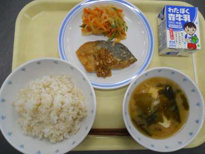 <献立>ご飯  鯖の唐揚げ 葱ソース  大根サラダ  味噌汁