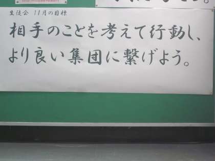 生徒会11月の目標 公開日 2022/11/16 更新日 2022/11/16 校長室より 専門委員会では、新メンバーで新たな目標を決めています。 生徒会は、「相手のことを考えて行動し、より良い集団に繋げよう!」と目標立てしました。 今日の午後はいじめ問題を考える子ども会議が行われます。 他人への迷惑行為をなくすために必要なことは何でしょうかね。 いいね(0)