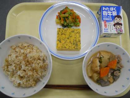 昨日泥付き、葉付きで納品された大根を、給食調理さんが丁寧に洗って料理してくれました。とりたてですのでみずみずしい大根です。育ててくださった農家の方、料理してくれた調理員さんに感謝して、残さずいただきます。