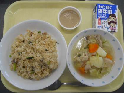 12月20日献立 公開日 2022/12/20 更新日 2022/12/20 給食 <献立>じゃこべえピラフ 鶏肉のポトフ カフェオレゼリー <産地>にんにく(青森県)、小松菜(埼玉県)、しめじ(長野県)、玉ねぎ(北海道)、人参(埼玉県)、じゃが芋(北海道)、キャベツ(愛知県)、かぶ(千葉県)、鶏肉(青森県)、ベーコン(茨城県) じゃこべえピラフは、じゃことべコーンを使ったピラフです。ポトフには8種類の食材を使って煮込んでいます。寒い時期には体が温まり、最適です。 いいね(0)