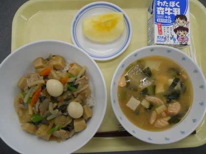 <産地>人参(埼玉県)、玉ねぎ(北海道)、小松菜(埼玉県)、大根(神奈川県)、じゃが芋(北海道)、長ネギ(千葉県)、りんご(長野県)、豚肉(青森県)、鮭(チリ銀鮭)