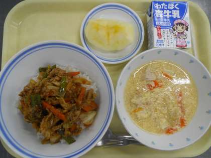 <献立>回鍋肉丼 サンラータン りんご