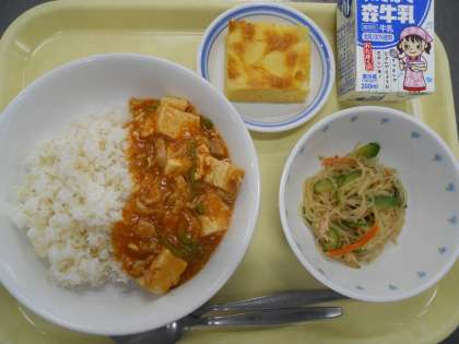 <献立>豆腐のチリソースかけ 中華風サラダ りんごケーキ