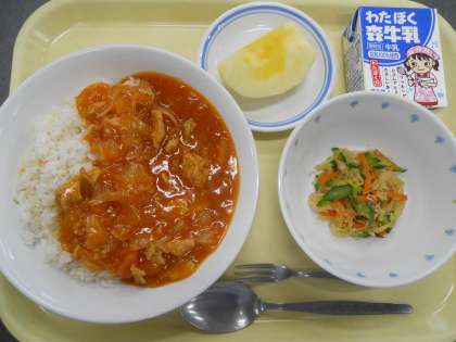 2月1日献立 公開日 2023/02/01 更新日 2023/02/01 給食 <献立>ポークハヤシライス きゅうりと大根のじゃこサラダ りんご <産地>玉ねぎ(北海道)、にんにく(青森県)、人参(埼玉県)、きゅうり(宮崎県)、大根(神奈川県)、りんご(青森県)、豚肉(青森県) ハヤシライスとは、薄切りの牛肉と玉ねぎなどの野菜を炒め、トマト味のソースや赤ワインを加えて煮込み、ご飯にかけた日本独特の洋風料理です。給食では豚肉を使ったポークハヤシです。 いいね(0)