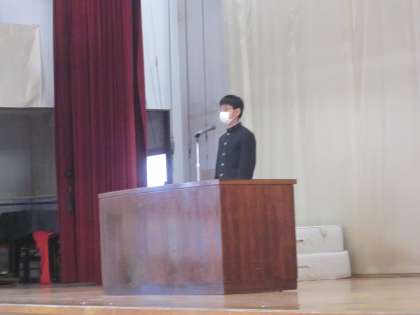 生徒会の2A津曲くんからは、スクールバッグの取扱が来年度から変わること、東山中生にふさわしい頭髪とは何なのか、アンケートをとるということについて話がありました。。