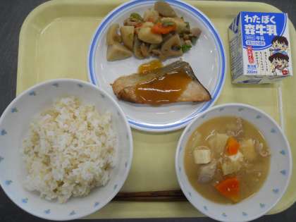 <献立>ご飯 ぶりの味噌照り焼き 筑前煮 呉汁