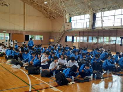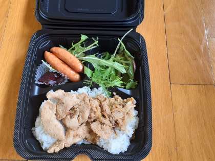 最終日に訪れるワタミオーガニックランドから届いたお弁当を食べ、午後のWALKラリーに備えています。