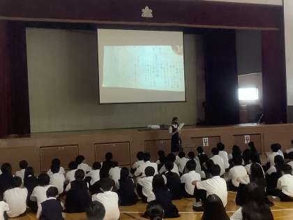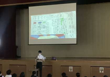 6/21から2年生は職場体験に行ってきました。その内容を1年生に向けて発表しました。その後事業所ごとに体験内容を説明しました。