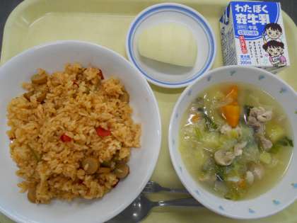 <献立>ジャンバラヤ   ポトフ   りんご