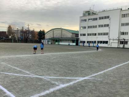 冬恒例の持久走。給食食べすぎたーと言いながらも、元気よく走っています!