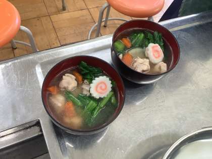 自分たちで作った美味しいお雑煮をいただき、調理室には笑顔が溢れていました。