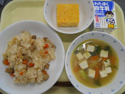 2月20日献立 公開日 2024/02/20 更新日 2024/02/20 給食 <献立> 中華おこわ 卵焼き チンゲン菜のスープ <産地> 人参(埼玉県)、長ネギ(茨城県)、生姜(高知県)、玉ねぎ(北海道)、チンゲン菜(茨城県)、鶏肉(静岡県)、鶏卵(群馬県) いいね(0)