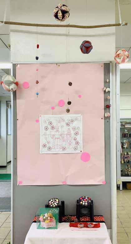 あと2日で雛祭りですね。本校の中央玄関にも可愛らしい雛飾りが飾られています。
