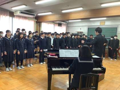 3月8日(金) 卒業式練習(歌) 公開日 2024/03/08 更新日 2024/03/11 学校日記 卒業まで残り7日となりました。 卒業式に向け、3年生は式で歌う「正解」を練習しています。 最後に一丸となって素晴らしい歌声を完成させましょう! いいね(0)