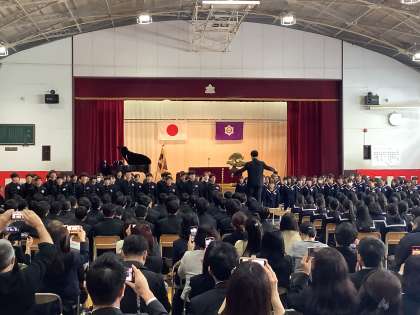 合唱コンクールでそれぞれのクラスが歌った曲をBGMに、一人一人凛々しい表情で卒業証書を受け取りました。