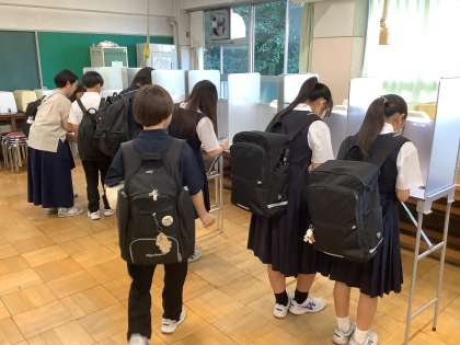 9月13日(金)生徒会役員選挙 公開日 2024/09/13 更新日 2024/09/13 学校日記 後期生徒会役員選挙がありました。どの立候補者も堂々と演説していました。 演説後は投票をしていました。結果は来週火曜日に分かります。 いいね(0)