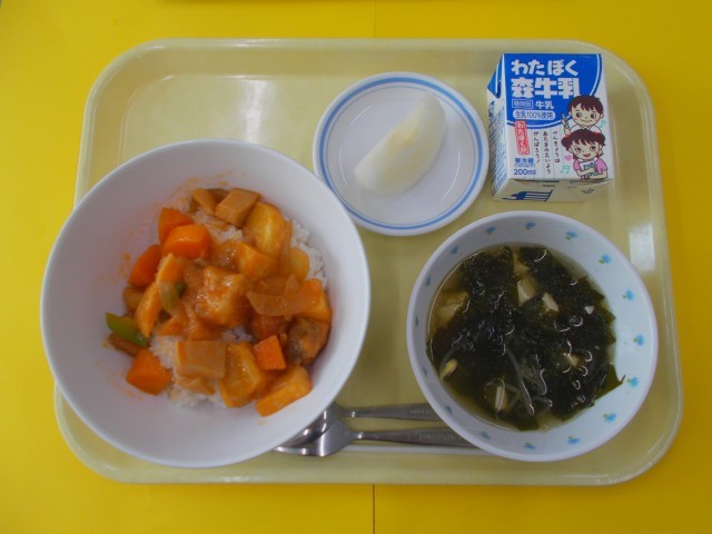 豆腐(佐賀・カナダ) 大豆もやし・豊水梨(栃木) 生姜(高知) じゃがいも・玉ねぎ・人参(北海道) ピーマン(茨城) 長ねぎ(青森) スケソウダラ(アメリカ) 鶏ガラ(宮崎)