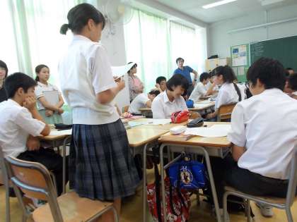 校内研修会では、2年生国語の授業を研究しました。国語の授業スペシャリストの松本主幹の授業では、アクティブラーニングを目指した授業展開をしました。
